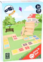 Domino XXL Active de la small foot este un joc de societate atemporal în format maxi, care distrează atât copiii, cât și adulții. Fiecare piesă este realizată din lemn 100% certificat FSC și decorată cu culori vii și modele hașurate. Puteți juca după culori sau după hașurare – copiii își antrenează astfel discriminarea vizuală, concentrarea și gândirea strategică.