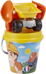 Acest set jucăuș pentru nisip, cu temă de construcții, este excelent pentru dezvoltarea imaginației, a motricității fine și a jocului în echipă. Copiii se vor bucura să transporte nisipul cu camionul, să-l cearnă prin sită și să construiască forme și fortărețe.
