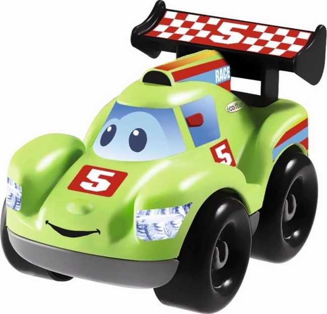 Trei modele de mașini de curse cu caroserie interschimbabilă. Fiecare model de mașină de curse cu față amuzantă nu are muchii ascuțite și este ușor de ținut. Ideal pentru mânuțele copiilor mici. Dimensiunile produsului (LxℓxÎ): 10 x 6,5 x 6,5 cm.