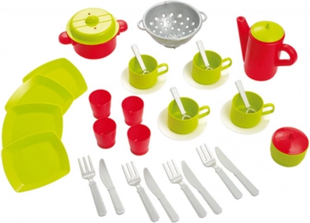 Set practic și distractiv de servicii de ceai și veselă pentru copii, ideal pentru joacă și dezvoltarea abilităților. Setul include echipare completă, de care copilul tău are nevoie pentru propriul mic local.