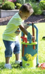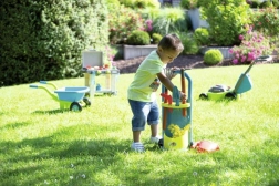 Datorită roților și mânerului, copiii pot transporta ușor toate uneltele acolo unde sunt necesare – în grădină, în curte sau la locul de joacă.