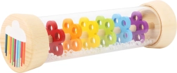 Prin înclinarea jucăriei se creează un foșnet natural, delicat, asemenea ploii, care ajută copilul să se calmeze și să se concentreze.