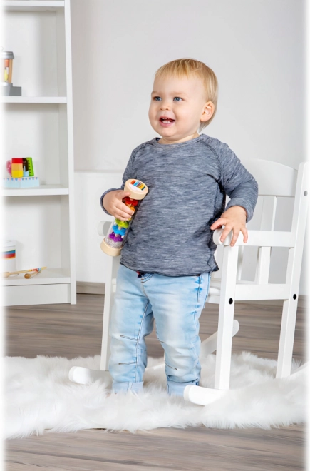 Ideal pentru dezvoltarea percepției auditive și vizuale, stimularea motricității fine și primele contacte cu ritmul. Potrivit de la 6 luni ca zornăitoare sigură, care atrage copilul și, în același timp, îl ajută la concentrare și relaxare.