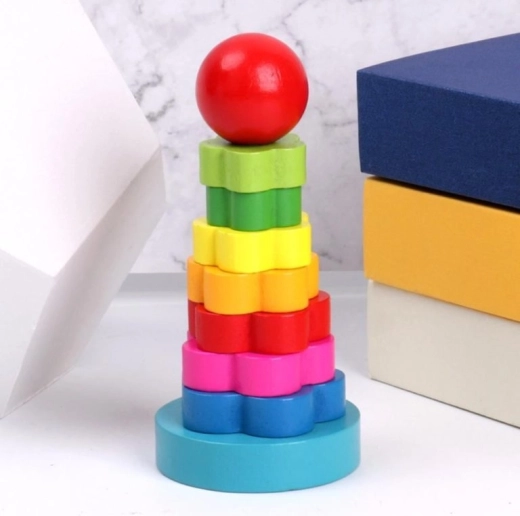 Oferiți copiilor o distracție de durată cu o jucărie clasică din lemn. Puzzle-ul cu inele este un joc clasic pentru copii mici. Ajută la dezvoltarea corectă a motricității fine, a logicii și a răbdării. Puzzle-ul poate fi, de asemenea, utilizat pentru a învăța culorile sau formele. Jocul constă în a construi un turn din inele, de la cel mai mare până la cel mai mic.0