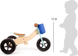 Bicicleta poate fi ușor convertită dintr-o tricicletă într-o bicicletă de echilibru pe două roți, fiind ideală pentru diferite etape de creștere și încredere ale copilului.