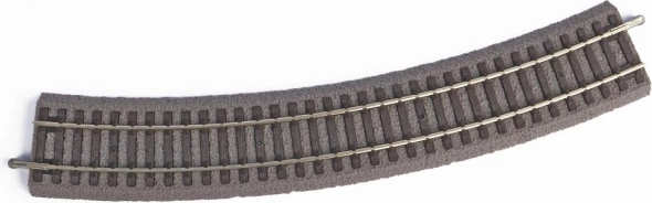 Șină curbată de la brandul Piko oferă o reproducere detaliată a traversei de lemn pe un terasament de pietriș și este proiectată în culori fidele. Este ideală pentru modelatorii care caută accesorii realiste pentru modelele lor de cale ferată.