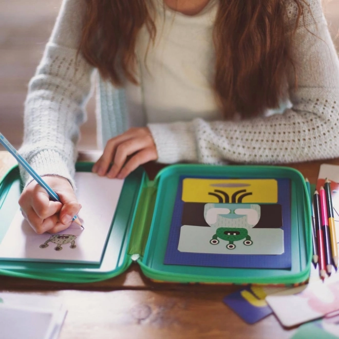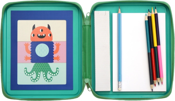 Setul creativ Monștri de la Petit Collage este ideal pentru micii artiști. Conține carduri și creioane pentru a crea monștri originali, ambalate într-un etui magnetic compact.