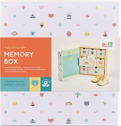 Cutia este realizată din materiale reciclate și ambalată fără plastic, subliniindu-i grija față de natură. Dimensiunile compacte facilitează plasarea pe raft sau în dulap, oferind în același timp suficient spațiu pentru primii botoșei, fotografii, felicitări și alte mici daruri.