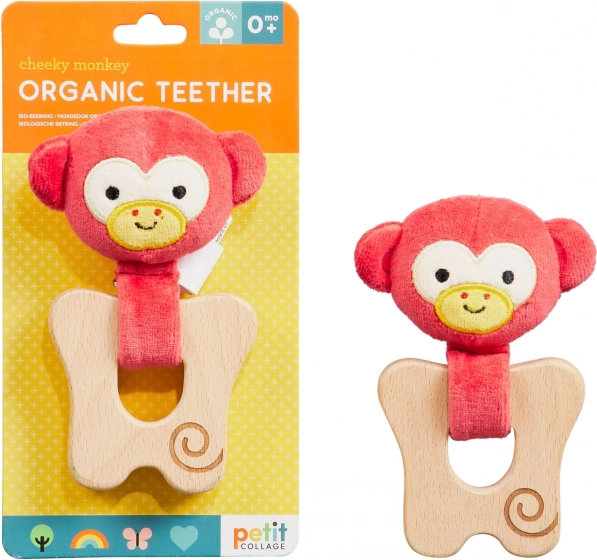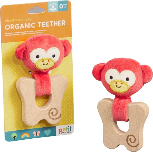 Jucăria de dentiție cu cap de maimuțică veselă oferă bebelușului atât confort, cât și distracție. Partea textilă din bumbac organic este plăcută la atingere, iar inelul din lemn de fag certificat FSC este neted și durabil. Forma ergonomică sprijină dezvoltarea motricității fine și o prindere sigură.