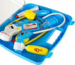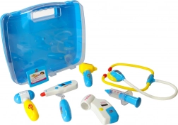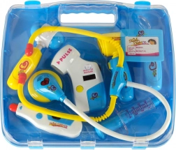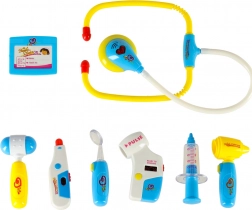 Setul include instrumente medicale precum stetoscop, termometru, tensiometru, instrument pentru urechi, seringă, ciocănel, insignă medicală și un instrument pentru verificarea gâtului cu iluminare.