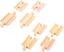 Acești conectori universali pentru șine, cu lungimea de 7 cm, sunt ideali pentru completarea sau repararea setului existent. Sunt fabricați din lemn de calitate, obținut responsabil și se potrivesc perfect cu majoritatea circuitelor feroviare din lemn. Datorită formei precise, piesele se conectează ușor și garantează o rulare stabilă și lină a trenulețelor.