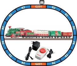 Acest set special de Crăciun aduce o garnitură asortată cromatic cu locomotivă cu abur 0-4-0 și tender, completată de un vagon de călători și două vagoane de marfă. Șinele cu terasament integrat asigură rezistență sporită, stabilitate și asamblare repetată comodă. Sunt incluse un oval de bază, alimentarea și controlerul analogic – doar asamblezi și poți porni.