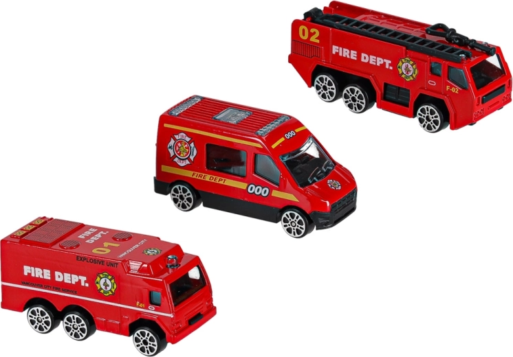- 3 mașini de pompieri roșii: autoscară, transportor blindat, vehicul urban