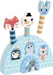 Vă prezentăm un joc de lansare din lemn cu animăluțe fermecătoare din Islanda. Copiii se vor distra cu trei personaje – o vulpiță, un iepuraș și un om de zăpadă – care sar dintr-un iglu. Jocul nu este doar distractiv, ci sprijină și dezvoltarea motricității fine și a creativității copiilor.