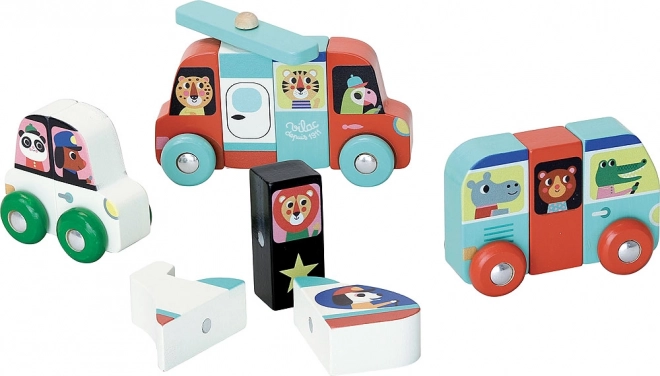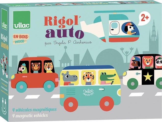 Descoperiți setul creativ Vilac pentru cei mici: puzzle-uri magnetice din lemn cu care puteți construi până la patru vehicule diferite – autobuz, elicopter, mașină și mașină de poliție. Piesele pot fi combinate liber, astfel încât copiii își dezvoltă imaginația și motricitatea fină. Ilustrațiile artistei suedeze Ingela P. Arrhenius oferă jucăriei un stil retro unic. Potrivite de la 2 ani, conține 12 piese din lemn de calitate cu magneți siguri.