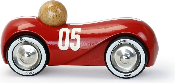 Mașina de curse roșie, stilată, din lemn lăcuit, cu roți metalice cauciucate, îi va încânta atât pe micii piloți, cât și pe iubitorii de design. Este potrivită pentru joacă și ca element decorativ. Fabricat în Franța, se remarcă prin execuție de calitate, roți rezistente și design vintage atemporal.