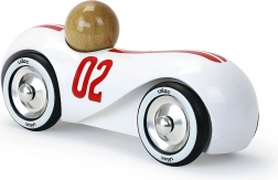 Mașina este fabricată în Franța din lemn de calitate și materiale rezistente. Datorită dimensiunilor compacte, se ține confortabil în mâna copilului, dezvoltă motricitatea fină și stimulează imaginația în jocurile de curse.