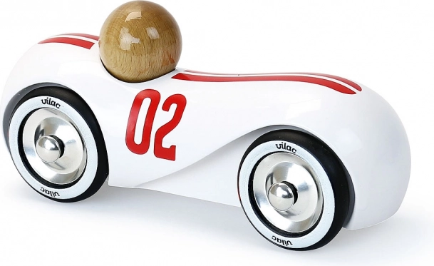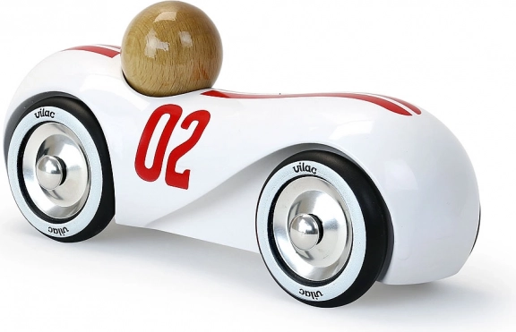 Oferiți-le copiilor și vouă înșivă o notă de eleganță atemporală. Mașina din lemn VILAC Streamline impresionează prin liniile curate, lacul alb și dungile roșii de curse cu numărul 02. Roțile metalice cu bandă de rulare din cauciuc asigură o mișcare lină și silențioasă pe podea, fiind grozavă atât pentru joacă, cât și pentru expunere.