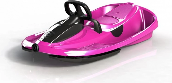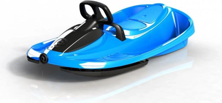 Sanie cu volan STRATOS - construcție unică și robustă; virarea cu diferențial mărește viteza în curbe deoarece fiecare schi se poate roti la un unghi diferit; mecanism automat de înfășurare pentru frânghia de tractare; două locuri; sarcină maximă 90 kg; frână masivă cu arc pentru revenirea în poziția inițială; fără elemente metalice, fără risc de coroziune; certificare de siguranță pentru copii.