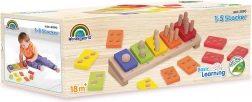 Construcția robustă din lemn masiv și finisajul neted asigură un joc sigur. Datorită culorilor vii, jucăria motivează la joacă repetată și dezvoltă eficient motricitatea fină, concentrarea și răbdarea.