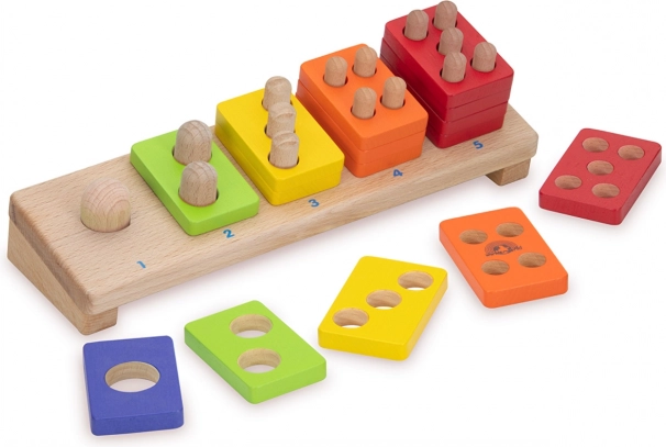 Fiecare piesă colorată are un număr de orificii care corespunde numărului de pe bază. Astfel, copiii exersează în mod natural numerele 1–5 și compararea cantităților.