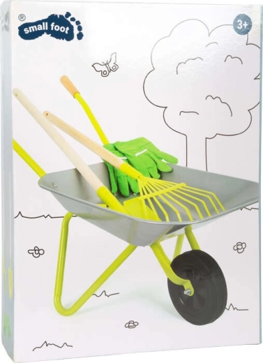 Descoperiți setul de grădinărit pentru copii SMALL FOOT, cu roabă metalică, lopată, greblă și mănuși din bumbac – ideal pentru micii ajutoare în grădină. Setul este realizat preponderent din metal, este robust, sigur și oferă multă distracție în activități reale de grădinărit. Construcție metalică stabilă, roabă aprox. 10 l / sarcină până la 15 kg și mânere ergonomice din lemn pentru manevrare ușoară și dezvoltarea abilităților copiilor.