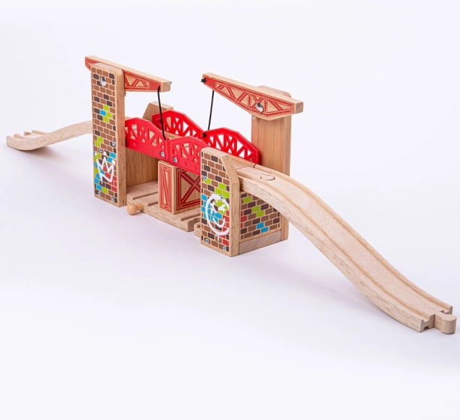 Podul dublu basculant Bigjigs Rail este un accesoriu uimitor pentru orice lume a trenurilor din lemn. Ambele părți ale podului pot fi ridicate, permițând trecerea lină a trenurilor, sau pot fi coborâte pentru a traversa vârful podului.
