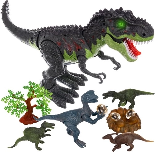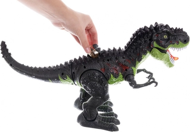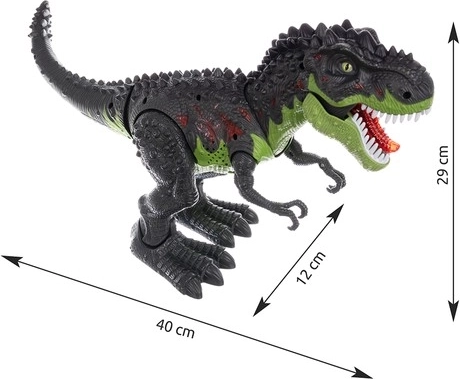 Jucăria T-Rex este echipată cu gura și ochii luminând, care clipesc și emit sunete ce amintesc de răgetul dinozaurului, asigurând o experiență de joc de neuitat.