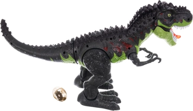 Pe lângă efectele luminoase și sonore, acest T-Rex are abilitatea de a depune ouă. Prin orificii speciale pe spate, jucăria pune ouă în cuibul inclus.