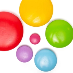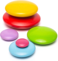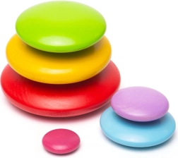Pietricelele sunt realizate din lemn rezistent și colorate cu vopsele netoxice. Datorită suprafeței netede, se țin plăcut în mână și sunt ideale pentru mâini mici de la 18 luni. După joacă, pot servi și ca o decorațiune veselă pentru camera copilului.