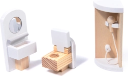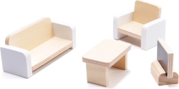 În pachet găsiți 16 piese de mobilier: masă, scaune, pat, lampă, fotoliu, canapea, măsuță de cafea, televizor, pian, bancă, șezlong, umbrelă de soare, duș, lavoar și toaletă.