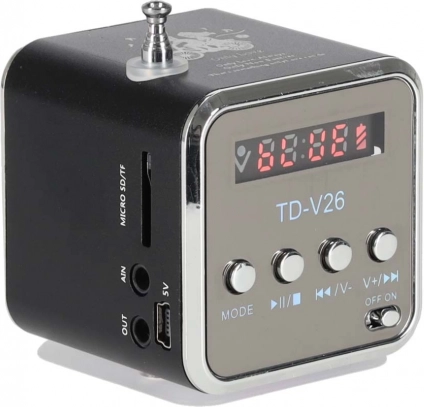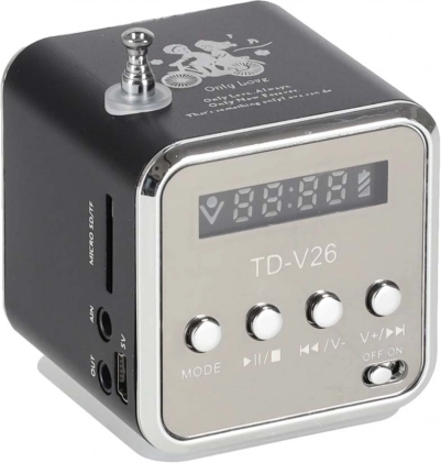 - microSD/TF, USB, intrare line 3,5 mm (AUX), ieșire căști 3,5 mm, intrare DC