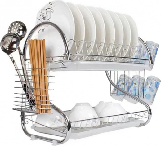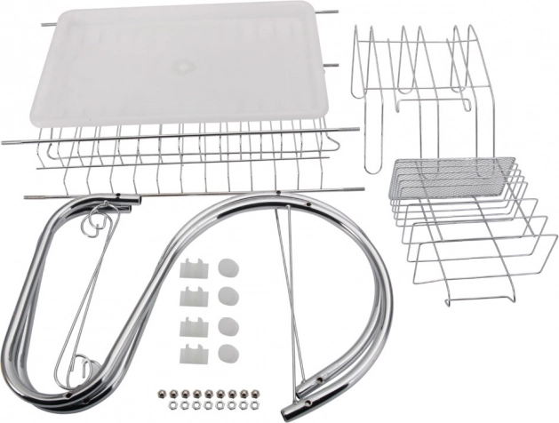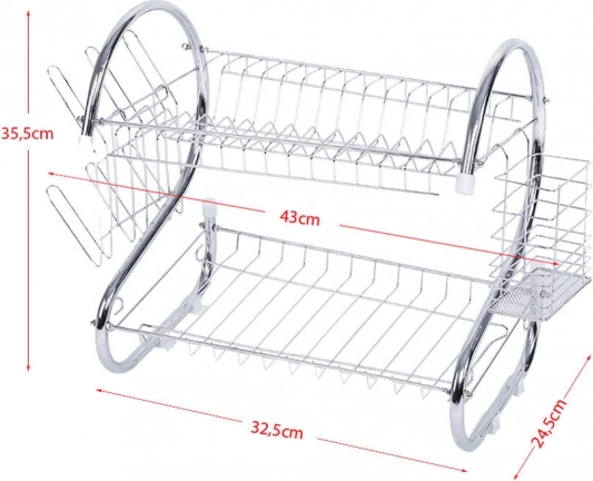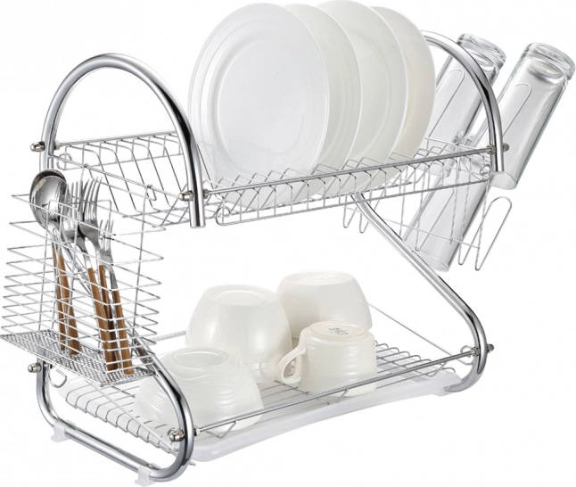 Etajul superior are spațiu pentru 16 farfurii. Partea inferioară este destinată bolurilor, cănilor, cratițelor etc. Include un suport de uscare detașabil pentru tacâmuri și pahare – trebuie doar să-l fixați de lateralele principale ale suportului de uscare. Se poate detașa și rearanja liber.