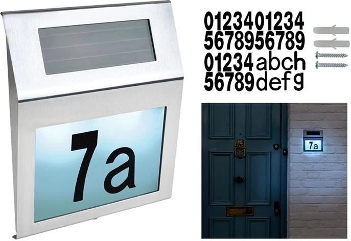 Numărul servește și ca lampă. Iluminarea este alimentată de energie solară, ceea ce în practică înseamnă fără cabluri și costuri zero de operare. Numărul solar al casei este un accesoriu util care garantează un marcaj lizibil direct pe fațada clădirii sau pe gard.