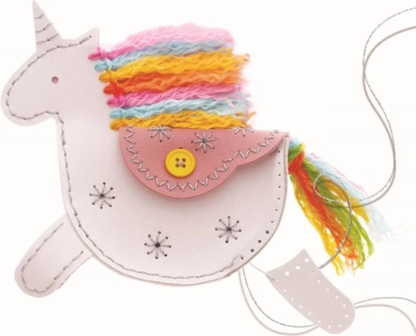 Cu acest set creativ, copiii își vor coase cu ușurință propriul portofel-unicorn din material textil rezistent, asemănător pielii ecologice. Piesele sunt pre-perforate pentru a facilita trecerea firului, astfel încât copiii își pot însuși în siguranță tehnicile de cusut de bază, iar la final vor obține un accesoriu practic în care să își păstreze mărunțișurile.