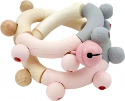 Elementele și mărgelele din lemn, netede, motivează bebelușul să apuce, să strângă și să rostogolească, dezvoltând coordonarea mână–ochi și simțul tactil.