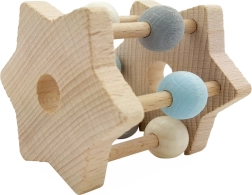 Descoperiți o zornăitoare din lemn de calitate, care, datorită execuției precise și culorilor blânde, stimulează în mod natural atenția bebelușului. Forma de steluță se potrivește perfect în mânuțele mici, iar materialele sigure asigură joaca liniștită în fiecare zi.
