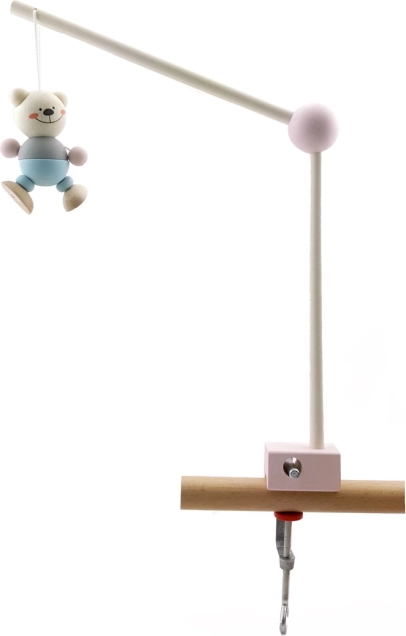 Suport stilat și funcțional pentru carusel/mobil deasupra pătuțului, care se montează ușor cu ajutorul unei cleme metalice robuste. Datorită intervalului universal de prindere, este compatibil cu majoritatea pătuțurilor și pieselor de mobilier pentru copii. Lemnul natural combinat cu elementul roz se potrivește atât camerelor moderne, cât și celor clasice.