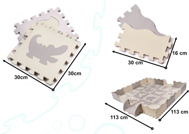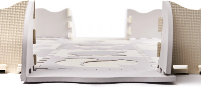 Covorașul pentru copii din spumă, format din piese puzzle cu forme detașabile, creează un spațiu sigur și creativ pentru joacă. Datorită marginilor ridicate, poți asambla un țarc care păstrează jucăriile în interior. Covorașul este rezistent la apă, are suprafață antiderapantă și amortizează loviturile, fiind ideal pentru primii pași. Culorile neutre gri și ecru se potrivesc în orice interior.