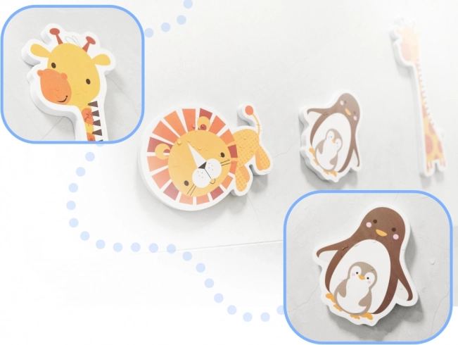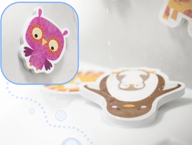 Descoperă farmecul jocurilor de baie cu animăluțele din spumă, viu colorate, pe care copiii le prind ușor și le pot lipi pe plăcile umede și pe pereții căzii. Piesele sunt moi, rezistente și sigure pentru mâinile copiilor – fără lipici, e suficientă apa.