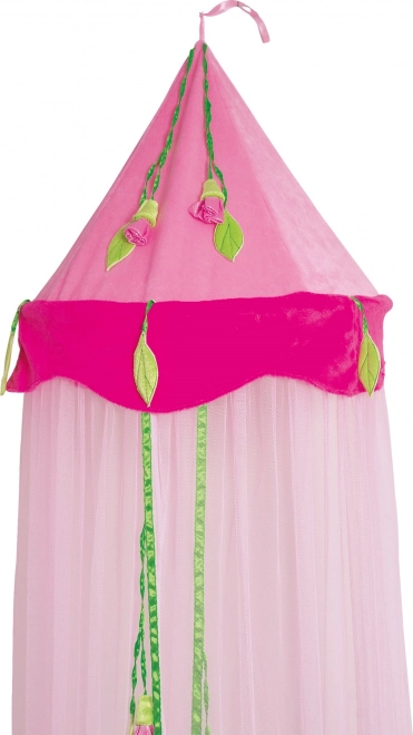 Îmbogățește camera copilului cu baldachinul Small Foot, care oferă nu doar un element decorativ, dar și o protecție practică împotriva insectelor. Datorită culorii sale roz și decorațiunilor florale, creează o atmosferă magică în camera copilului: