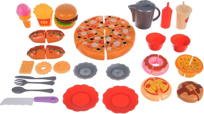 Setul de jucării fast-food este perfect pentru micii bucătari care vor să se joace de-a preparatul mâncărilor preferate. Copiii pot crea propriile combinații datorită celor 42 de elemente pe care le conține acest set. Culorile vivante și designul realist al fiecărui element contribuie la stimularea imaginației copiilor.