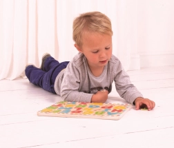 Piesele colorate din lemn în formă de litere, cu imagini ale animalelor, susțin însușirea naturală a literelor și îmbogățirea vocabularului.