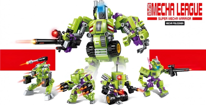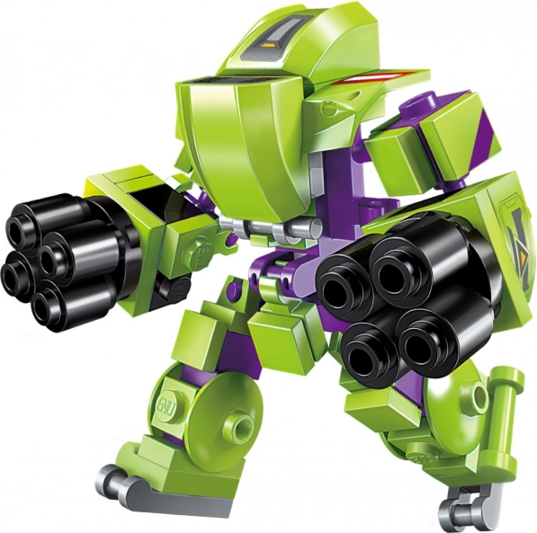 Setul permite construirea diferitelor modele, inclusiv un mare robot blindat, și este compatibil cu alte seturi de construcție.