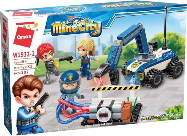 Cu setul de construcție Qman MineCity veți experimenta aventuri pline de tensiune și distracție. Combinați piesele și creați un vehicul de poliție care vă va ajuta să dezamorsați o bombă periculoasă. Setul susține motricitatea fină și dezvoltarea gândirii logice a copiilor.
