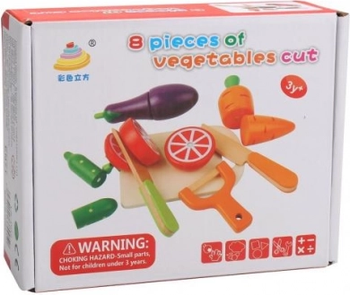 Descoperiți bucuria jocului sigur cu aceste legume de tăiat din lemn. Setul include diferite tipuri de fructe și legume, cum ar fi morcov și roșie, pe care copiii le pot tăia cu plăcere. Acest joc: