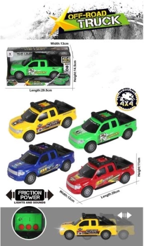 Mașină din plastic cu dimensiunea de 25 cm; la apăsare emite sunet, iar luminile mașinii se aprind.