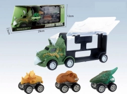 Descoperiți un camion dinozaur unic, care îi va încânta pe toți copiii prin combinația lumii dinozaurilor și a mașinilor. Cap-tractorul în formă de dinozaur atrage atenția de la prima vedere, iar cele 3 mașinuțe cu mecanism de întoarcere incluse asigură un joc dinamic atât acasă, cât și în călătorii.