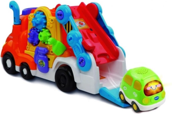 Auto Serviciu Tut Tut de la VTech este companionul ideal pentru copiii care doresc să se distreze și să învețe în același timp. Jucăria poate transporta până la patru mașini mici Tut Tut și este plină de elemente interactive care dezvoltă abilitățile motorii și imaginația. Datorită punctelor de contact „Smart point”, cântă trei melodii și include o serie de fraze amuzante, ceea ce ajută la dezvoltarea vocabularului copiilor.