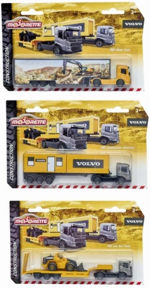 Model metalic licențiat Volvo transporter oferă 3 tipuri de execuție: cu remorcă și încărcător pe roți, cu 2 containere de construcții sau ca camion cu remorcă detașabilă. Datorită șasiului metalic robust și execuției de calitate, rezistă la joacă intensă. Lungime 20 cm.